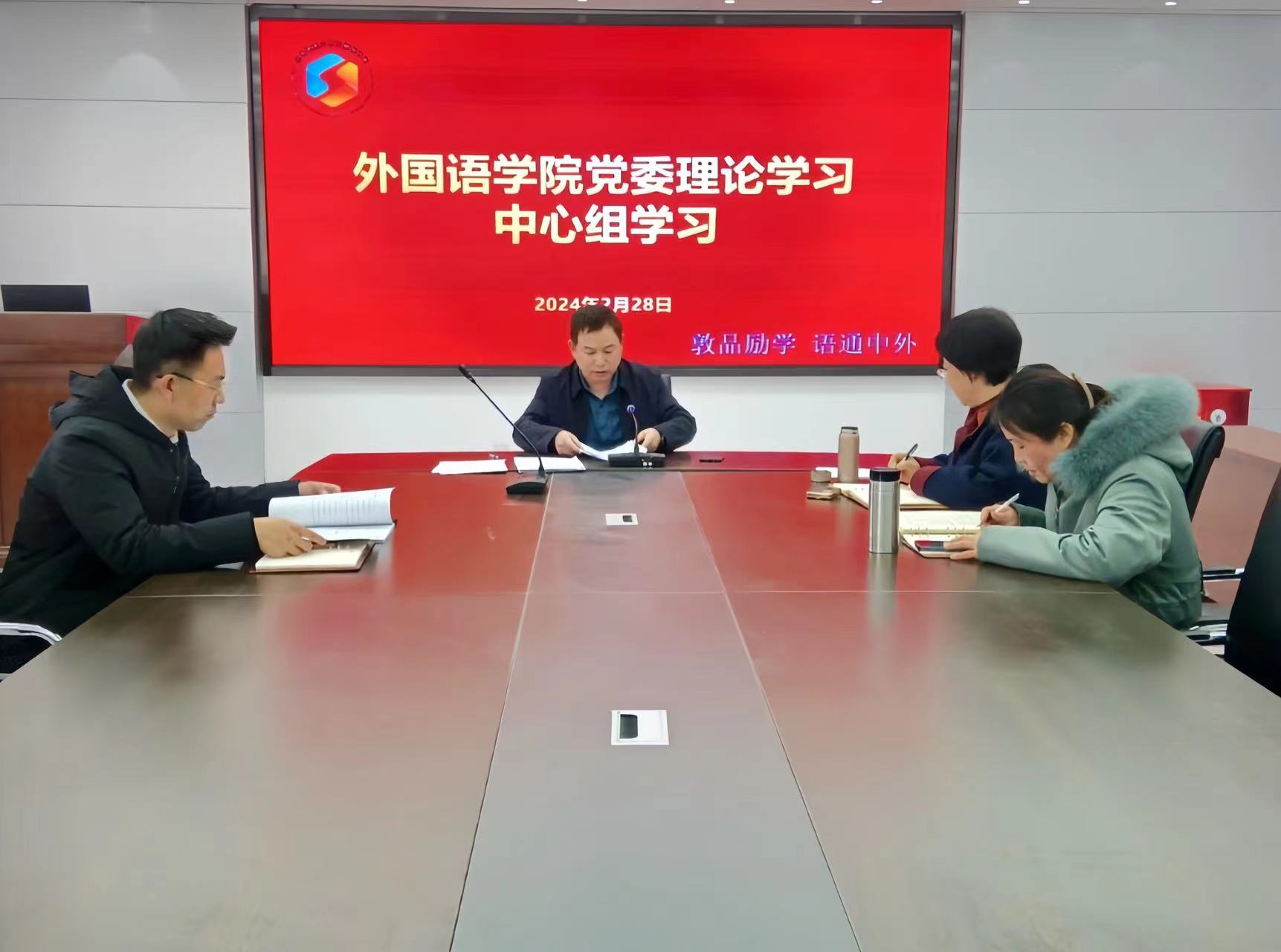 2月28日,外國語學(xué)院黨委理論學(xué)習(xí)中心組于文經(jīng)樓C220會議室開展意識形態(tài)專題學(xué)習(xí)。會議由外國語學(xué)院黨委書記王效仿主持,學(xué)院黨委班子成員參加。
