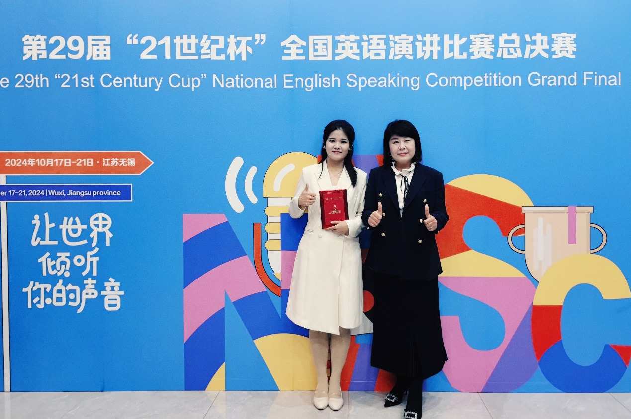 10月16日-21日,第29屆中國日報社“21世紀杯”全國英語演講比賽總決賽在江蘇無錫隆重舉辦。來自全國20多個省市地區(qū)及香港、澳門特別行政區(qū)的246名學子參加了本次決賽。我校外國語學院英語系2021級學生莊相婷在本次大賽中表現(xiàn)突出,獲國家級二等獎。指導教師外國語學院英語系夏鵬錚榮獲大賽優(yōu)秀指導教師榮譽稱號,青島德信體育榮獲優(yōu)秀組織獎榮譽稱號。