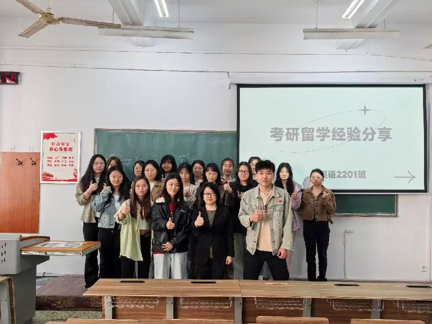 為助力同學們更好地規(guī)劃未來發(fā)展路徑,增強考研和留學的信心與能力,4月29日,外國語學院英語2201班舉辦了一場考研留學經(jīng)驗分享會。本次分享會由班主任楊向梅主持,邀請了今年升學的六名優(yōu)秀學長學姐,班級全體同學參加。