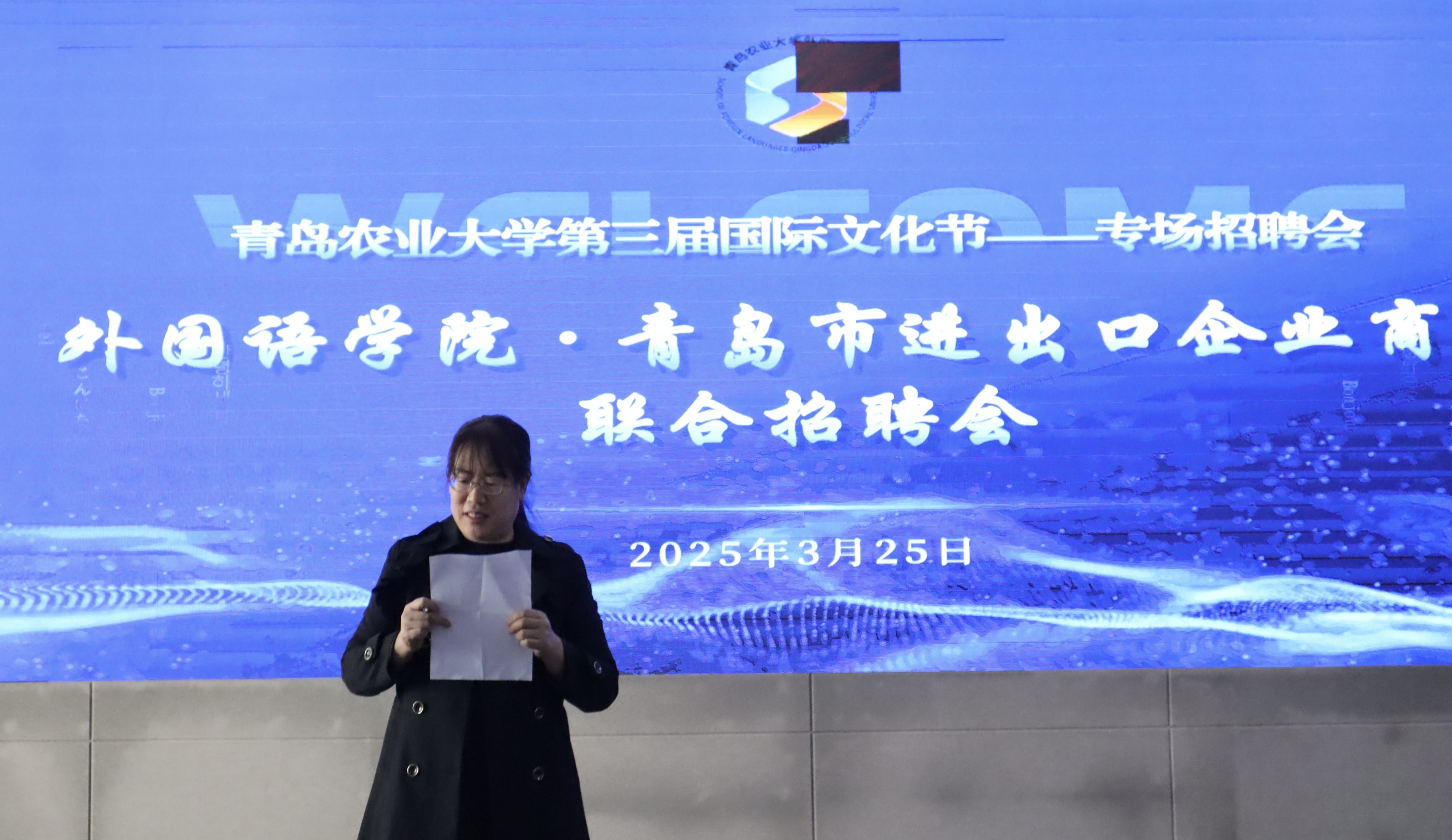 為搭建校企合作的橋梁,拓寬學生就業(yè)渠道,3月25日外國語學院與青島進出口商會聯(lián)合舉辦外貿人才專場招聘會。此次招聘會吸引了19家涵蓋國際貿易、跨境電商、語言服務、教育培訓等多領域的優(yōu)質企業(yè)。外國語學院黨委書記王效仿、院長紀衛(wèi)寧、黨委副書記副院長盛金玉、團委書記線郁、英語系主任徐玉鳳、英語系副主任兼校企合作方向負責人左燕茹全程參與活動,專場招聘活動由英語系副主任兼校企合作方向負責人左燕茹主持。