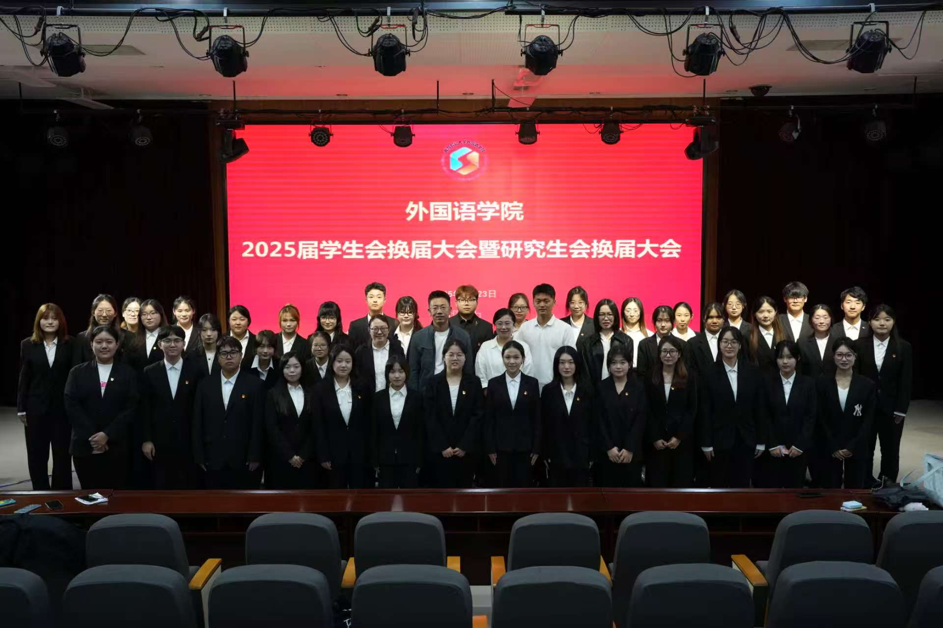 9月23日,外國語學(xué)院于學(xué)術(shù)會館第二報告廳召開2025屆學(xué)生會暨研究生會換屆大會。外國語學(xué)院黨委副書記、副院長盛金玉,團委書記線郁,輔導(dǎo)員王洋洋、鄒曉婷、張玉靈出席大會。2024屆、2025屆學(xué)生會和研究生會、2024級全體學(xué)生骨干參加,大會由線郁主持。