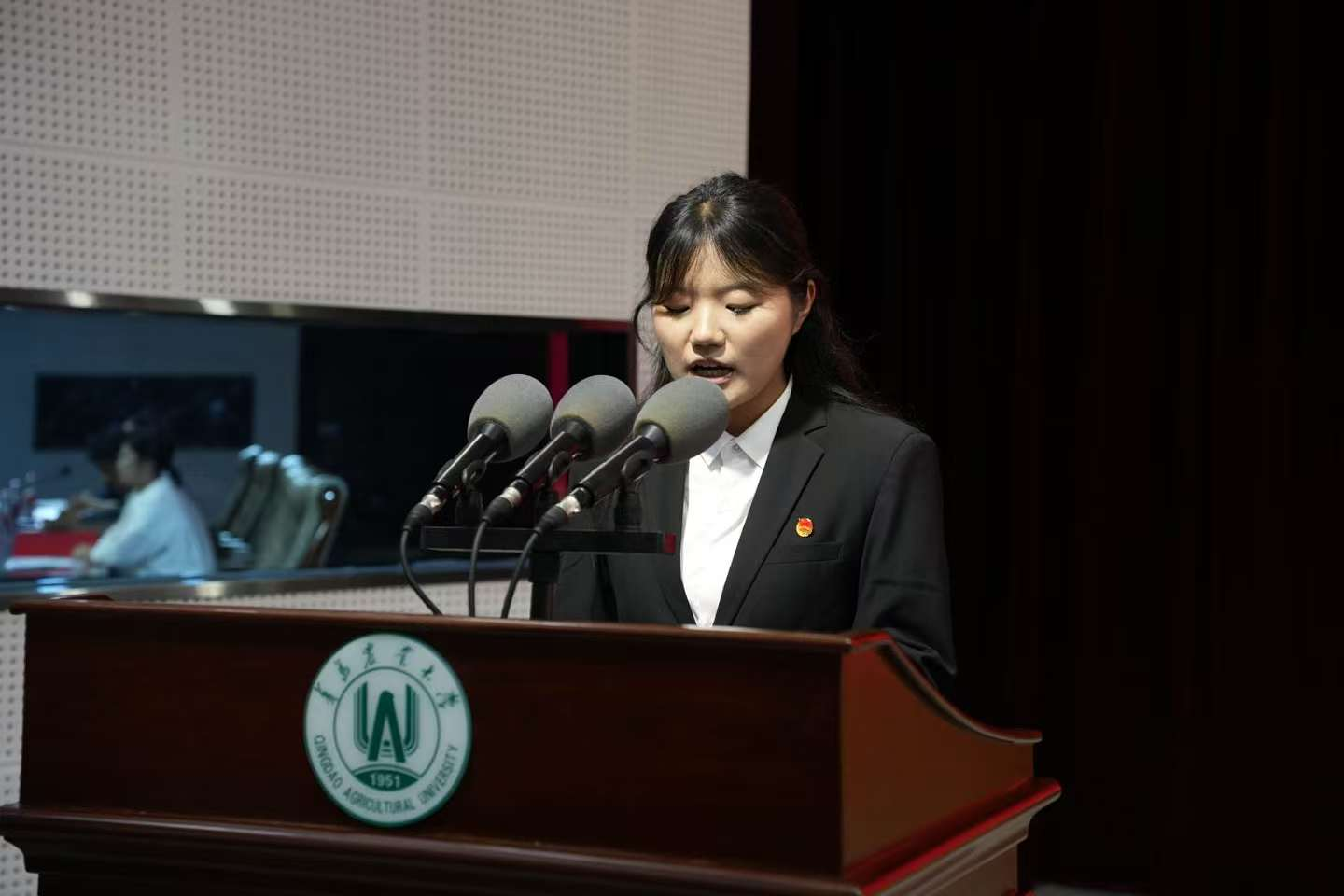 張溪芮帶領(lǐng)2025屆學(xué)生會全體成員進行宣誓。