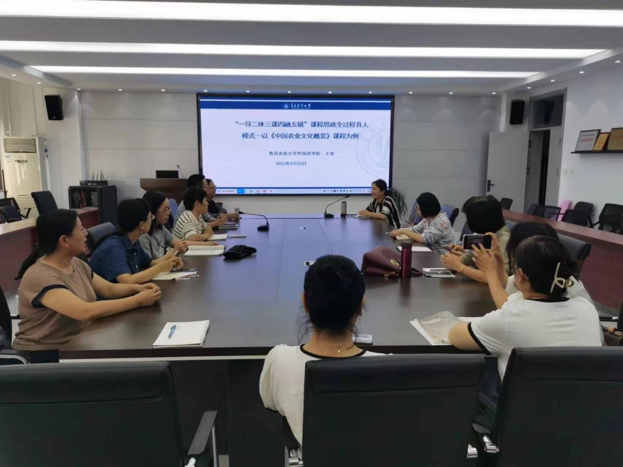 9月20日,青島德信體育外國語學(xué)院大學(xué)英語第一教學(xué)部與校優(yōu)秀本科教學(xué)團(tuán)隊“新農(nóng)科背景下綜合英語課程群混合金課建設(shè)團(tuán)隊”于文經(jīng)樓C220資料室聯(lián)合舉辦大學(xué)英語課程思政與一流課程建設(shè)研討會。會議由外國語學(xué)院副院長李春梅主持,課程建設(shè)優(yōu)秀教師鄭濤受邀參加。