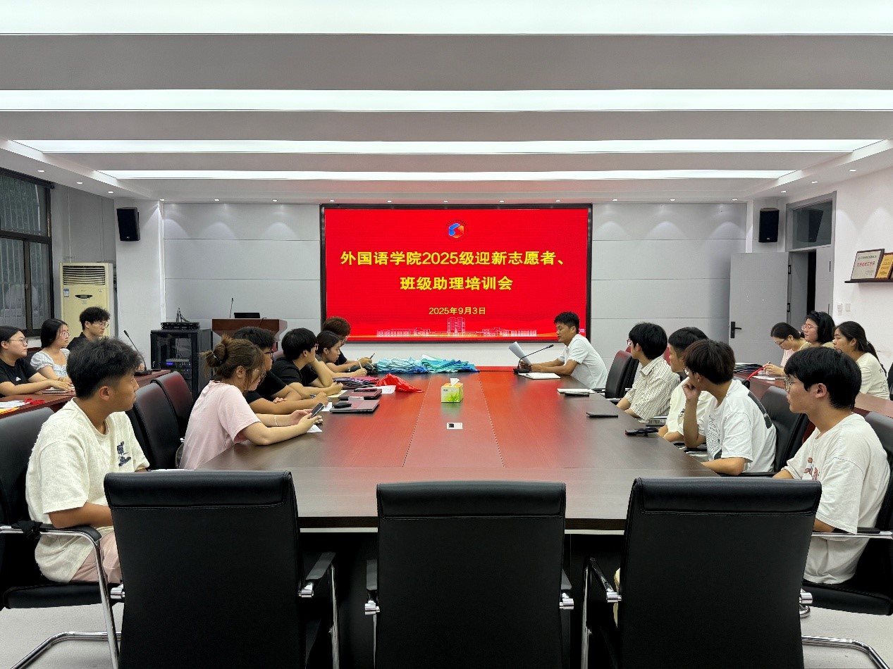 9月3日,外國語學院于文經樓C220會議室召開2025級迎新志愿者及班級助理培訓會,外國語學院輔導員王洋洋主持,2025級班級助理以及迎新志愿者參加。