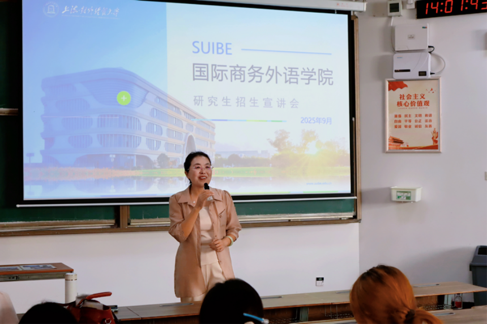 為幫助同學(xué)們明晰升學(xué)就業(yè)方向、提升學(xué)術(shù)與就業(yè)競(jìng)爭(zhēng)力,9月25日,外國(guó)語(yǔ)學(xué)院于教學(xué)樓B202召開(kāi)本科生升學(xué)指導(dǎo)會(huì)。本次會(huì)議由學(xué)院英語(yǔ)系主任徐玉鳳主持,特邀上海對(duì)外經(jīng)貿(mào)大學(xué)外語(yǔ)學(xué)院唐怡馨、煙臺(tái)大學(xué)外國(guó)語(yǔ)學(xué)院副教授張明娟主講,2023級(jí)英語(yǔ)專業(yè)、2023級(jí)英語(yǔ)外包專業(yè)及2023級(jí)日語(yǔ)專業(yè)學(xué)生參加會(huì)議。