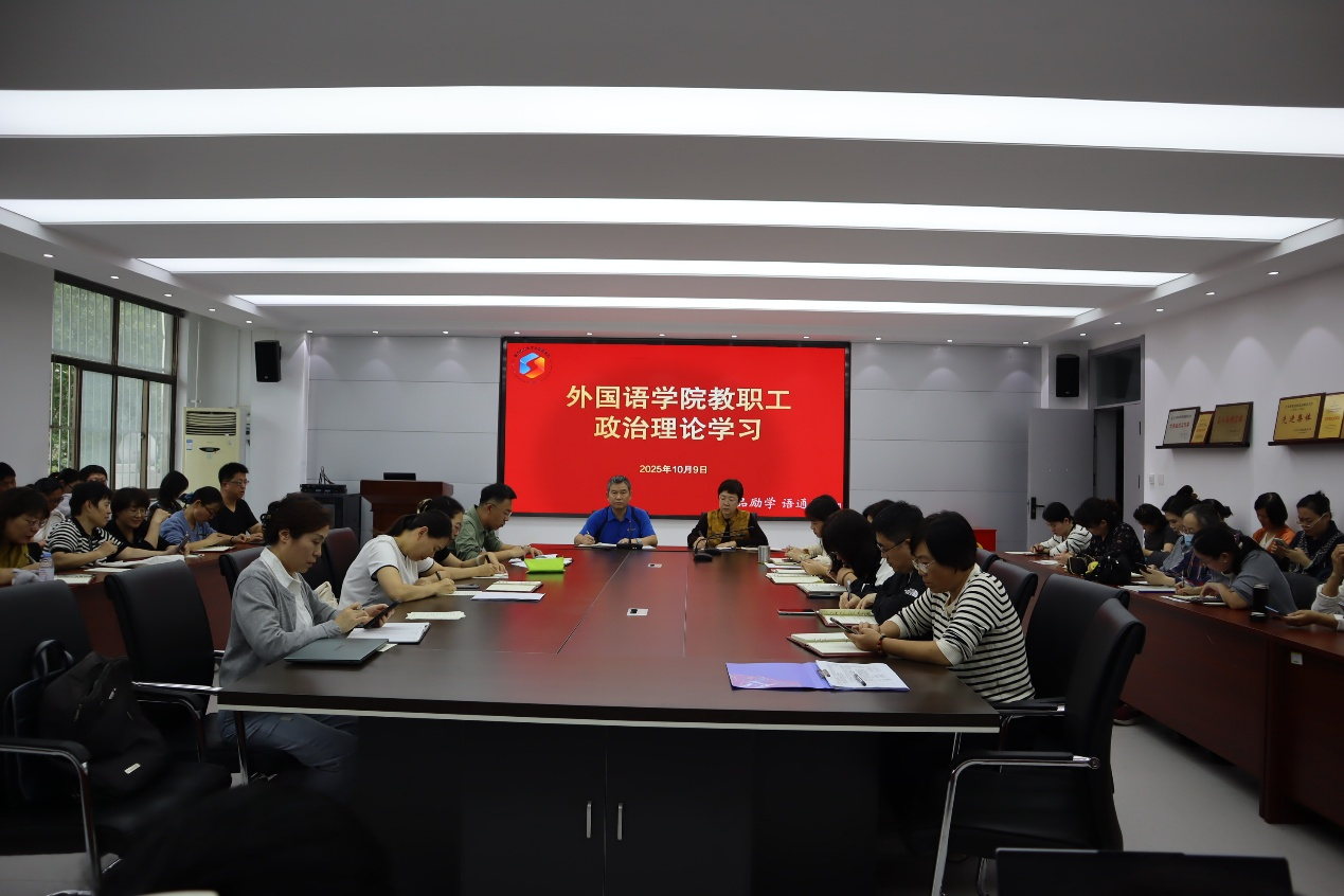 10月9日,外國語學(xué)院在文經(jīng)樓C220會議室組織舉辦習(xí)近平總書記視察山東重要講話精神專題理論學(xué)習(xí),外國語學(xué)院黨委書記王效仿主持,全體教職工參加學(xué)習(xí)。