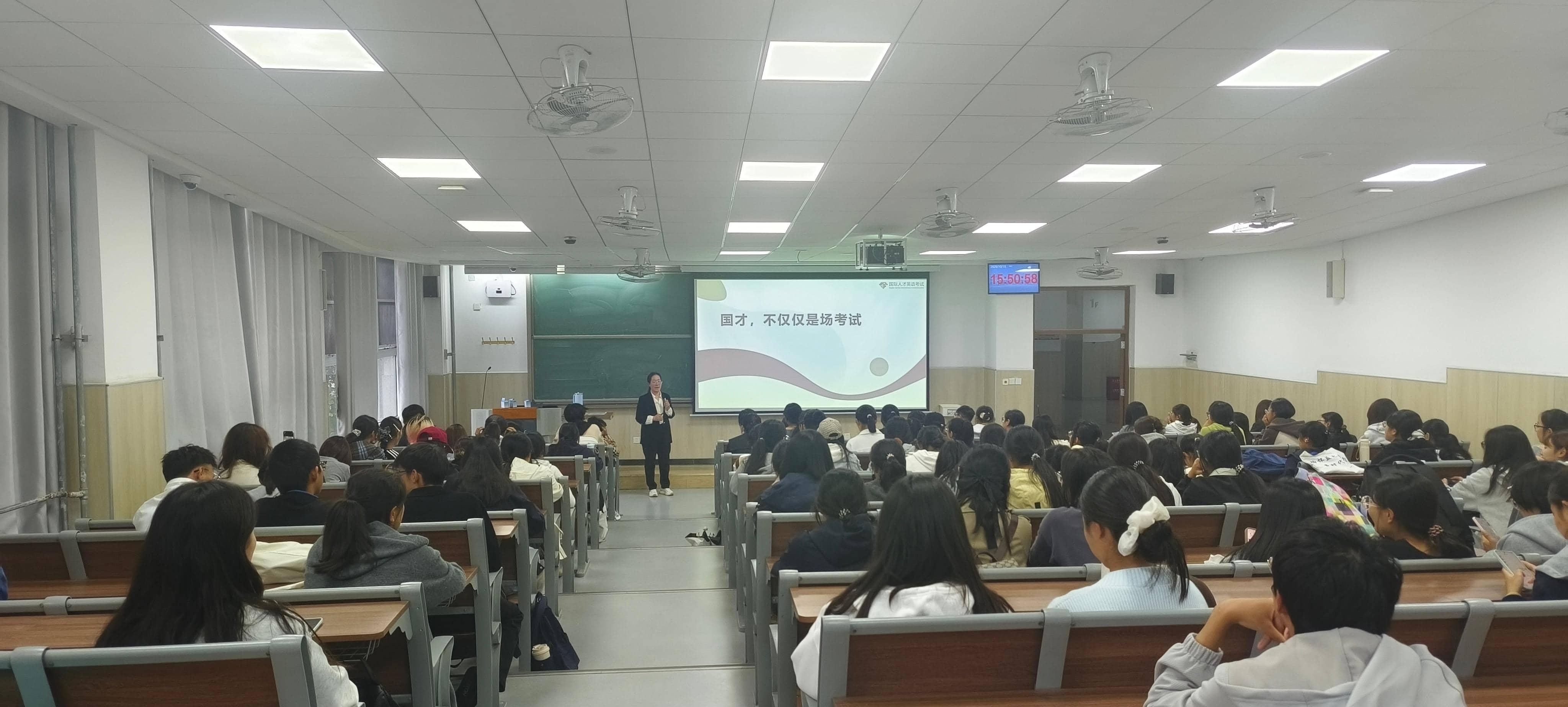 講座圍繞國才考試基本介紹、國才考試證書價值、2025年下半年國才考試三個部分展開,為學(xué)生詳細(xì)介紹了國才考試以及國才考試證書在不同方面的應(yīng)用價值。首先鄒秋娟從國才考試研發(fā)理念、國才考試級別及適用群體、國才考試與大學(xué)英語四六級對比、國才考試與國內(nèi)外考試的對標(biāo)四個方面對國才考試進(jìn)行基本介紹。在國才考試證書價值部分,鄒秋娟從企業(yè)參觀-實習(xí)實踐、國際平臺-志愿服務(wù)、求職就業(yè)-綠色通道、能力提升-助力考研、外卡資格-助力競賽等方面詳細(xì)解讀國才證書在企業(yè)實習(xí)、志愿服務(wù)、求職綠色通道、考研加分、競賽外卡等方面的作用。最后鄒秋娟介紹了2025年下半年國才考試的時間安排、報名方式、備考資源、報考福利等方面的內(nèi)容。