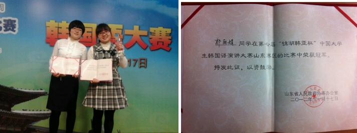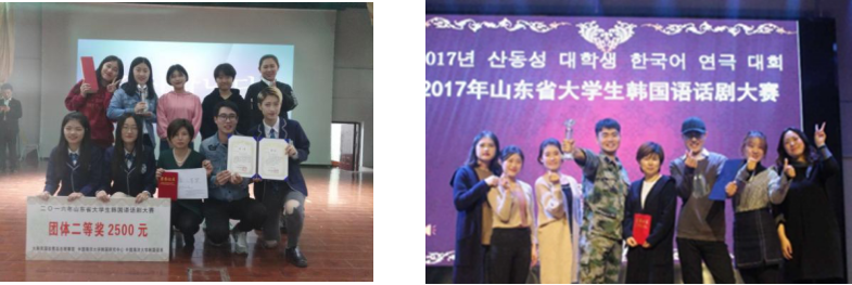 2016、2017連續(xù)兩年獲得山東省大學(xué)生韓國語話劇大賽二等獎
