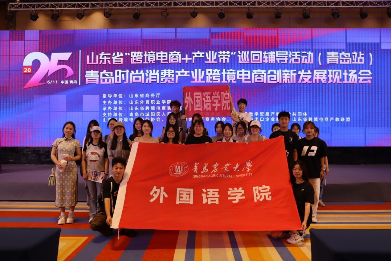 6月11日,外國語學(xué)院英語系副主任兼跨境電商專業(yè)負(fù)責(zé)人左燕茹帶領(lǐng)2023級英語(跨境電商)班級學(xué)生,參加了由山東外貿(mào)職業(yè)學(xué)院主辦的山東省“跨境電商+產(chǎn)業(yè)帶”巡回輔導(dǎo)活動(青島站)暨青島時尚消費產(chǎn)業(yè)跨境電商創(chuàng)新發(fā)展現(xiàn)場會。
