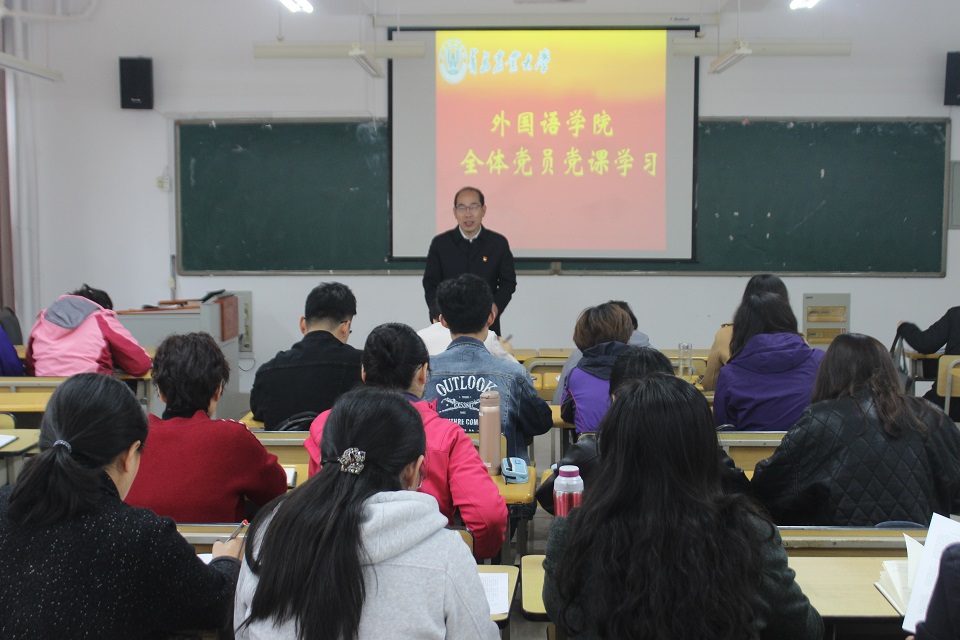 4月28日,青島德信體育外國語學(xué)院在文經(jīng)樓C214教室舉行學(xué)習(xí)《中共中央關(guān)于加強(qiáng)黨的政治建設(shè)的意見》(以下簡稱《意見》)專題黨課,黨課由學(xué)院黨委書記王仁高主講,全體師生黨員參加學(xué)習(xí)。