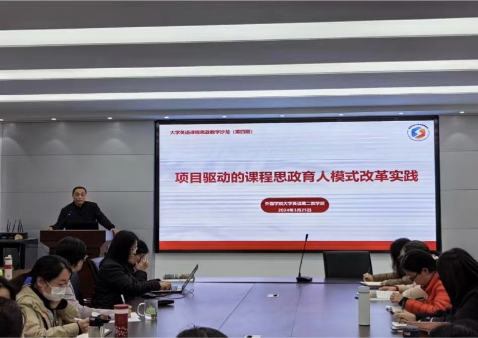 為進(jìn)一步深化課程思政教學(xué)改革,更好地推進(jìn)課程思政建設(shè),發(fā)揮課堂教學(xué)立德樹人的主渠道作用,2024年3月25日,外國語學(xué)院大學(xué)英語第二教學(xué)部在文經(jīng)樓C220舉辦第四期大學(xué)英語課程思政教學(xué)沙龍,本期活動(dòng)主題為“項(xiàng)目驅(qū)動(dòng)的課程思政育人模式改革實(shí)踐”,由大學(xué)英語第二教學(xué)部進(jìn)階課程組第二備課組長張昌宏主持,大學(xué)英語第二教學(xué)部全體教師參加會(huì)議。