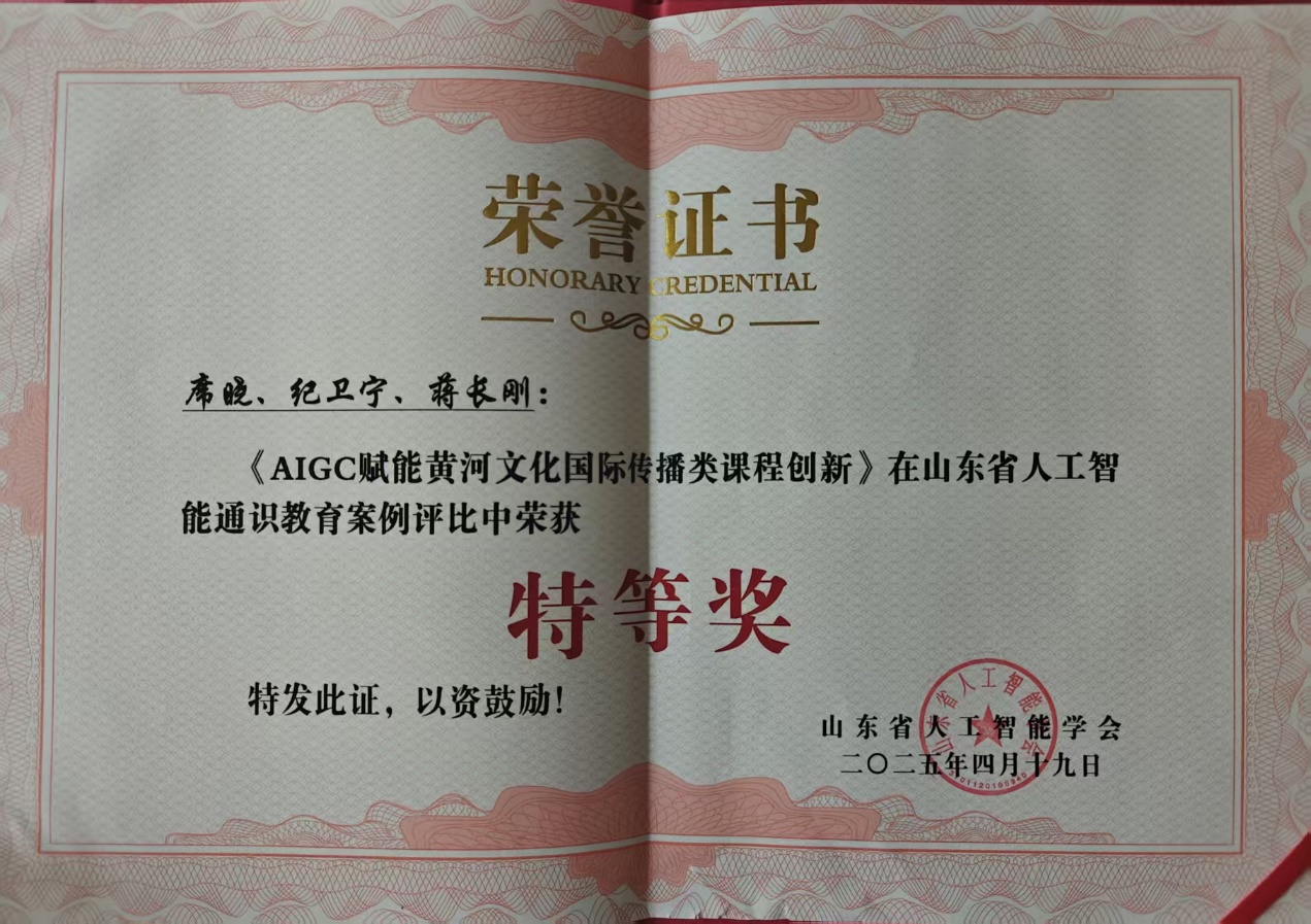 4月19日至20日,山東省人工智能學(xué)會公布了“人工智能通識教育優(yōu)秀教學(xué)案例”評選結(jié)果。青島德信體育外國語學(xué)院“GenAI賦能黃河文化對外傳播課程群”智慧教學(xué)團(tuán)隊紀(jì)衛(wèi)寧、席曉、蔣長剛?cè)唤處煈{借《AIGC賦能黃河文化國際傳播類課程創(chuàng)新案例斬獲特等獎并入選優(yōu)秀案例集。
