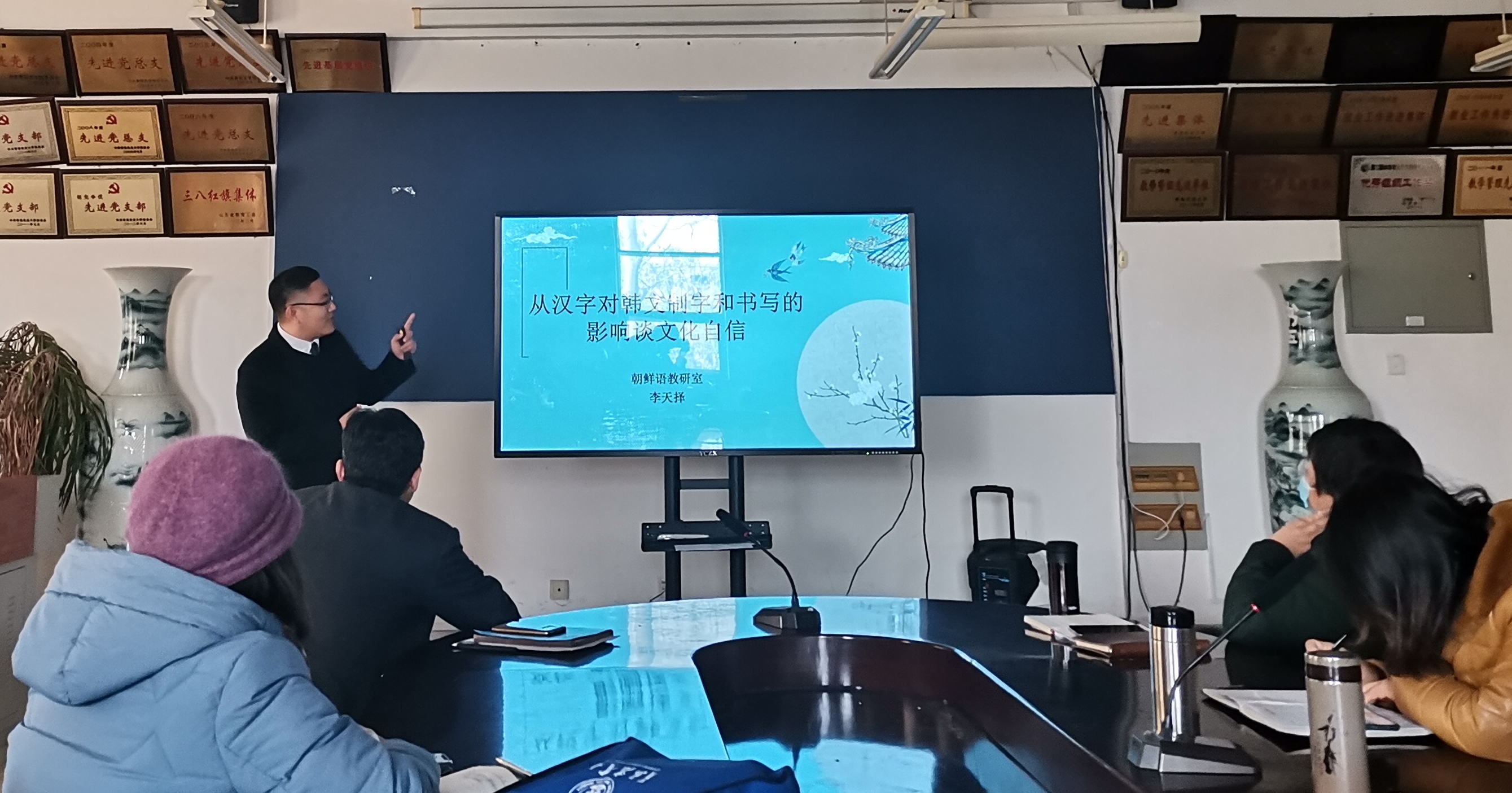 12月17日,青島德信體育外國語學(xué)院于文經(jīng)樓會(huì)議室開展外語學(xué)術(shù)論壇第十六講。此次學(xué)術(shù)論壇由畢業(yè)于韓國高麗大學(xué)的李天擇博士主講,主講題目為《從漢字對(duì)韓文制字和書寫的影響談文化自信》,學(xué)院全體領(lǐng)導(dǎo)、教職工與會(huì),副院長(zhǎng)高秀雪教授主持論壇。