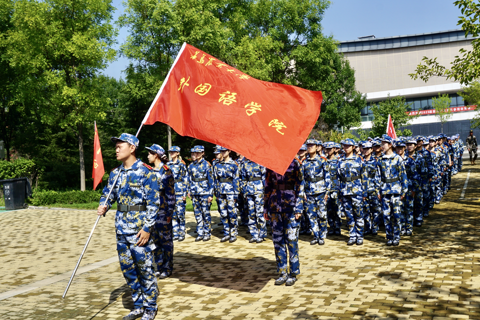 軍訓匯演現(xiàn)場,外國語學院新生方隊步伐整齊,口號嘹亮,動作規(guī)范利落,既展現(xiàn)出過硬的紀律素養(yǎng),又生動彰顯出學院學子團結一心、奮發(fā)向上的精神風貌。
