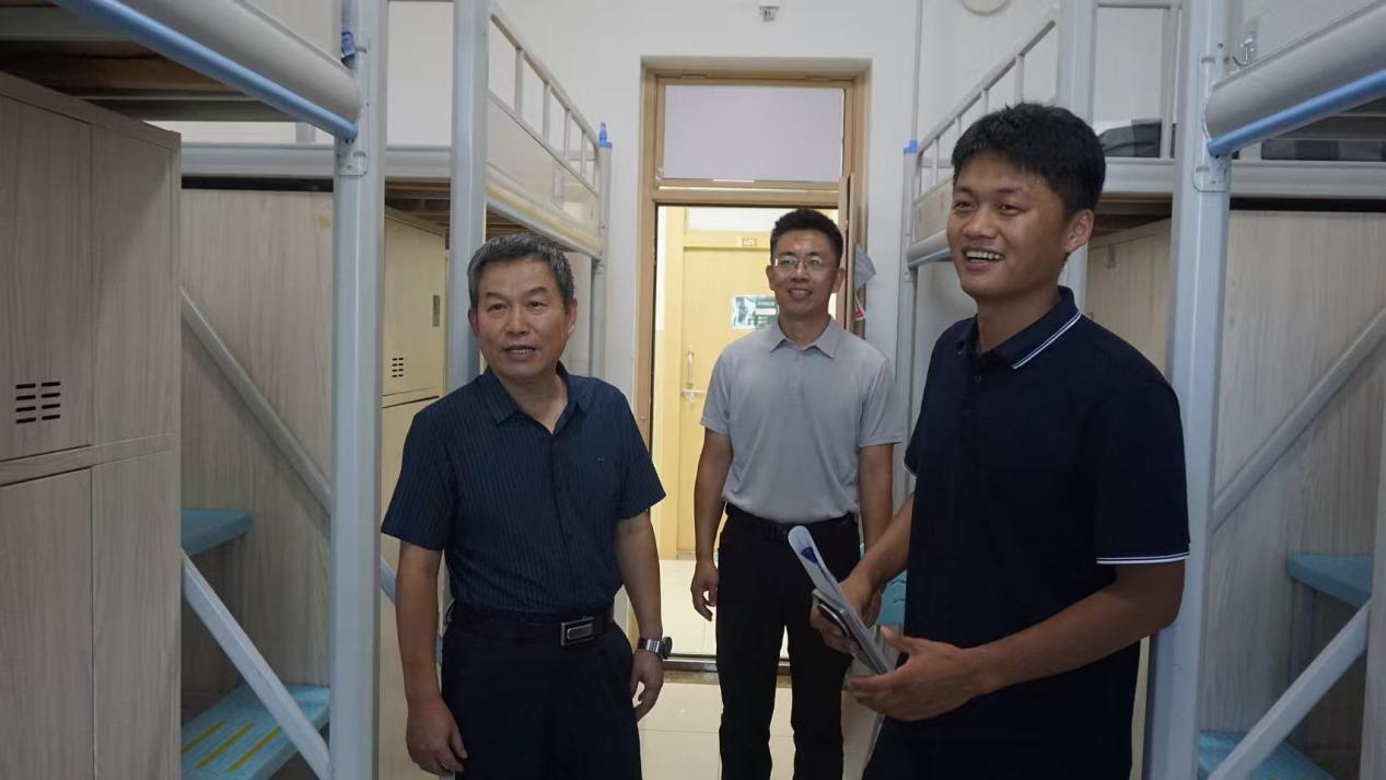 學(xué)院黨委書記王效仿在迎新現(xiàn)場與新生及其家長就學(xué)院的基本情況和特色優(yōu)勢進(jìn)行交流,并實(shí)地走訪新生宿舍,他鼓勵新生勤于學(xué)習(xí),努力進(jìn)步,盡快適應(yīng)大學(xué)生活。