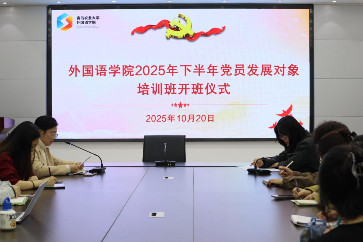 為進(jìn)一步提升黨員發(fā)展對(duì)象的思想覺(jué)悟、學(xué)習(xí)能力和模范帶頭意識(shí),10月20日,外國(guó)語(yǔ)學(xué)院于文經(jīng)樓C220會(huì)議室舉行2025年下半年黨員發(fā)展對(duì)象培訓(xùn)班開(kāi)班儀式。外國(guó)語(yǔ)學(xué)院黨委書(shū)記王效仿出席本次儀式并講授主題黨課,團(tuán)委書(shū)記線郁和學(xué)院全體黨員發(fā)展對(duì)象參會(huì),儀式由輔導(dǎo)員鄒曉婷主持。