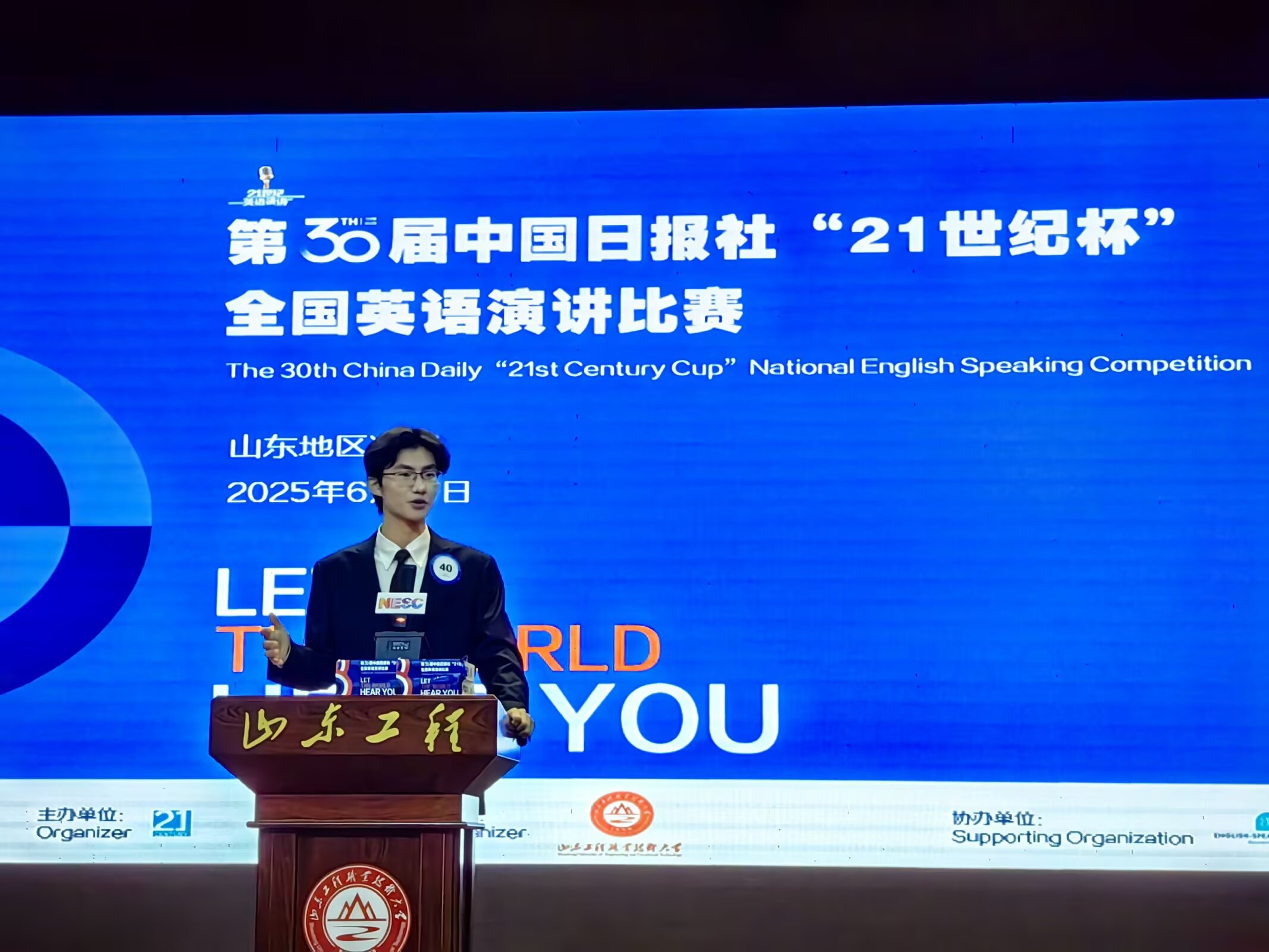 6月20日至21日,第30屆中國日?qǐng)?bào)社“21世紀(jì)杯”全國英語演講比賽山東地區(qū)決賽在山東工程職業(yè)技術(shù)大學(xué)落下帷幕。由青島德信體育外國語學(xué)院英語系教師夏鵬錚指導(dǎo)的唐晨亮(巴瑟斯學(xué)院)、陳悅琳兩位同學(xué),通過有備演講、即興演講、評(píng)委提問三個(gè)環(huán)節(jié)的激烈角逐,分別獲得山東省二、三等獎(jiǎng)的好成績。