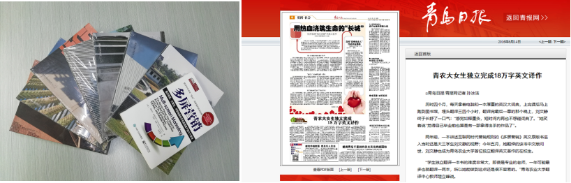 實踐積累激發(fā)了創(chuàng)業(yè)潛能。翻譯中心的創(chuàng)業(yè)翻譯團隊承擔(dān)“互聯(lián)網(wǎng)+”時代的大學(xué)生創(chuàng)業(yè)項目,承接了知識產(chǎn)權(quán)翻譯、中國科技部分詞等項目,學(xué)生獨立或參與翻譯了《多屏營銷》、《社區(qū)建筑》、《景觀與建筑》、《地域文脈與大學(xué)建筑》等10部著作,出版翻譯文字達23萬,獲得較好的經(jīng)濟效益。